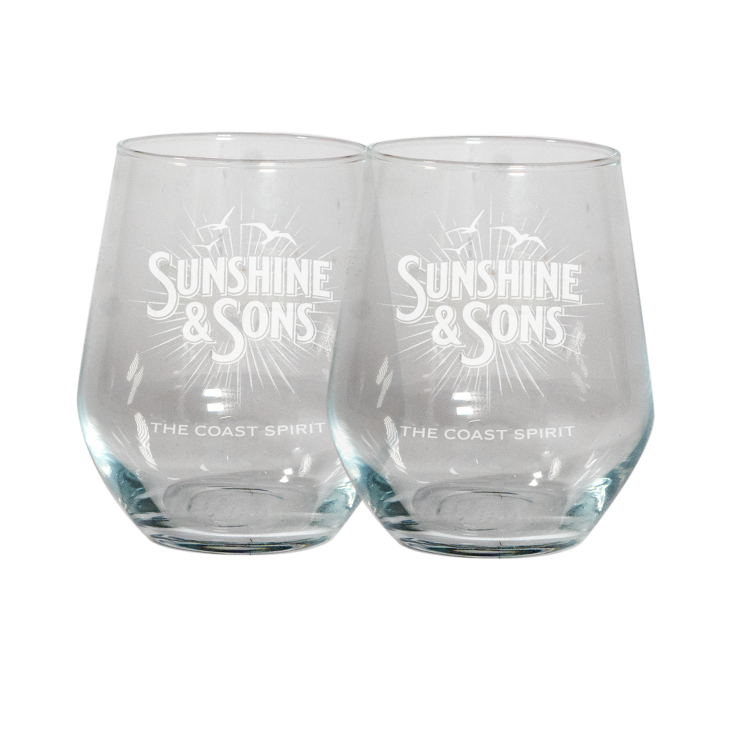 2x Sunshine & Sons Etched Gin Glasses